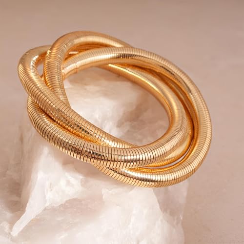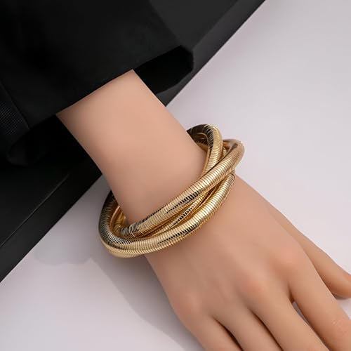 Generic - مجموعة اكسسوارات - اساور حلقية متعددة الطبقات مطلية بالذهب قابلة للتعديل للنساء والفتيات، مجوهرات انيقة للمناسبات غير الرسمية او الرسمية او تقديم الهدايا