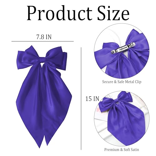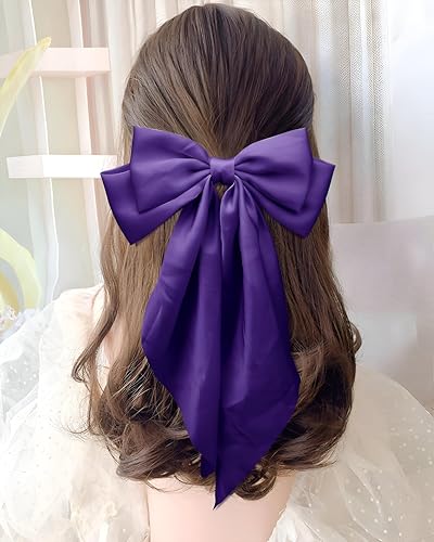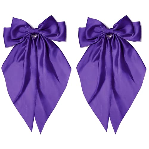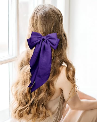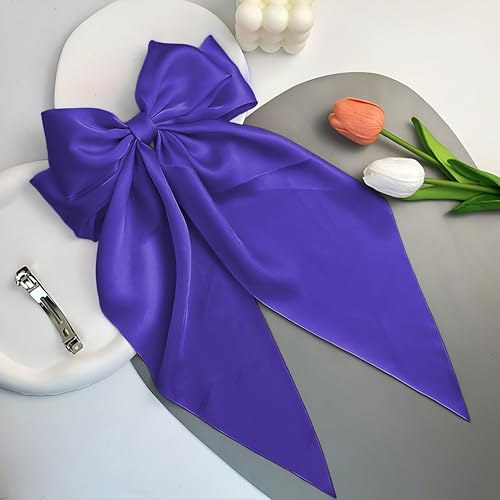 Generic - مجموعة اكسسوارات - فيونكة شعر كبيرة من الساتان مع ذيول طويلة للنساء، قطعتان من مشابك فيونكة صفراء، اكسسوارات شعر بمشبك معدني انيق لاطلالة كاجوال او رسمية (قطعتان، ارجواني)