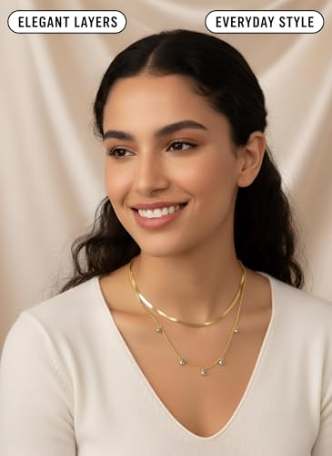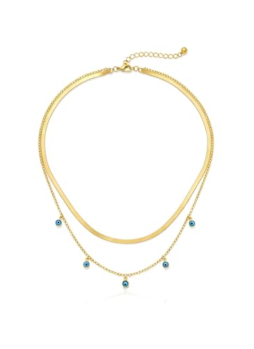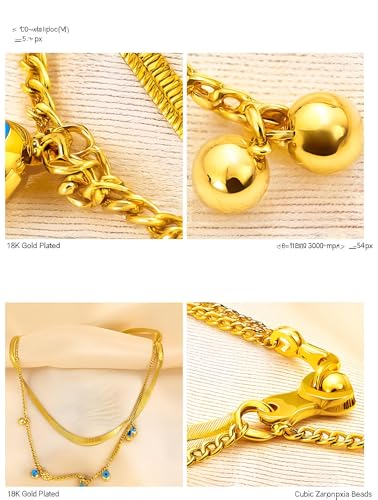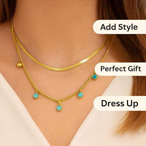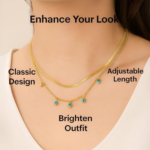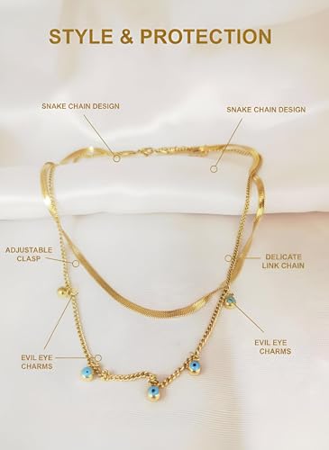 Generic - الاكسسوار - سلسلة ثعبان ذهبية عصرية متعددة الطبقات مزينة بدلايات صغيرة واقية من الحسد، مادة متينة مقاومة للماء، لطيفة على البشرة، لمسة نهائية مقاومة للبهتان، قفل قابل للتعديل.