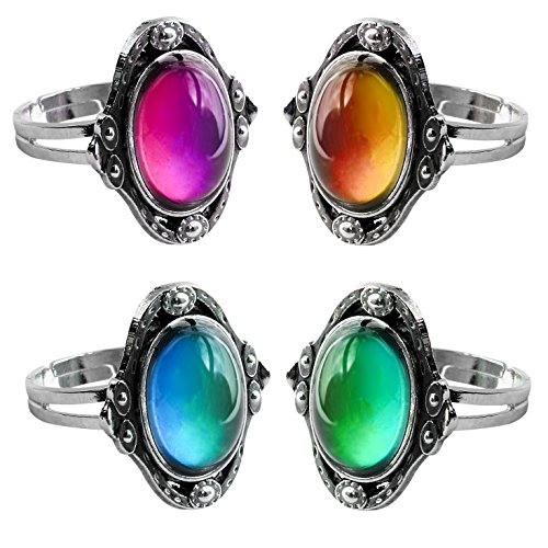 Acchen - خاتم بتصميم اثري مع حجر كريم يتغير لونه حسب الحالة العاطفية مع صندوق من اكشن, راتنج, غير قابل للتطبيق، 10 للرجال
