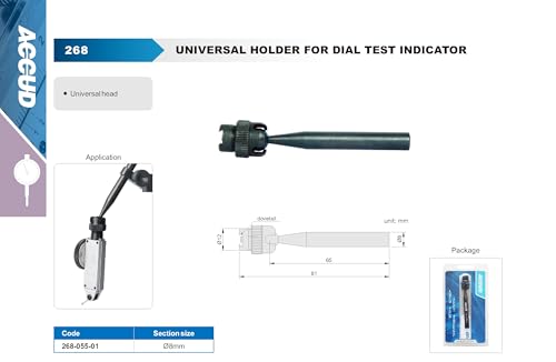 Accud - حامل Accud العالمي لمؤشر اختبار القرص، الطراز 268-055-01، مقاس المقطع 8 مم، الطول 81 مم، أداة قياس دقيقة برأس عالمي