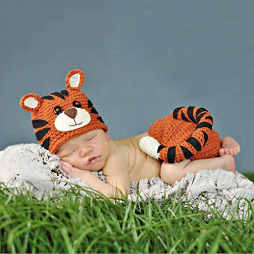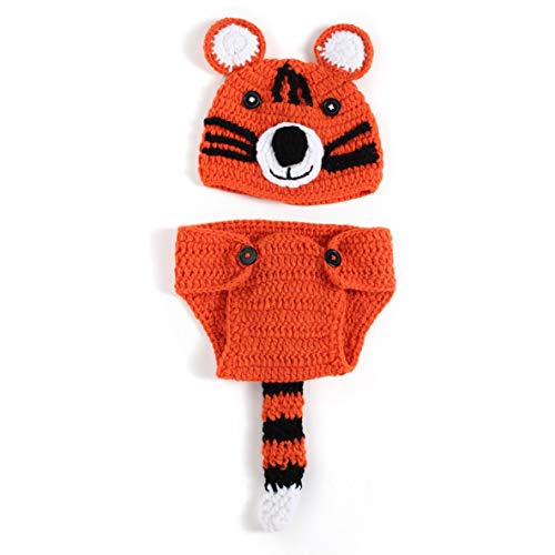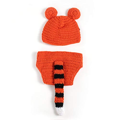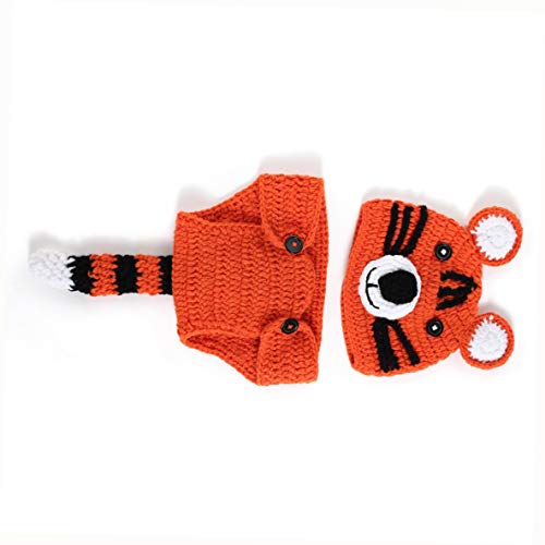 ACEHE - زي تصوير فوتوجرافي للاطفال البيبي حديثي الولادة طقم كروشيه مكون من طاقية وبنطلون الصوف بتصميم نمر للاولاد والبنات اكسسوارت التنكر ايسي برتقالي واسود قطن