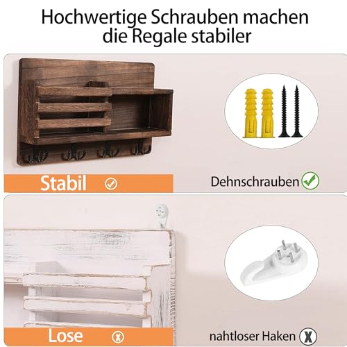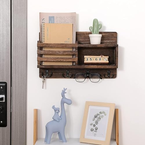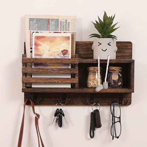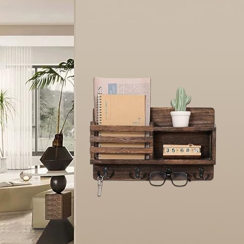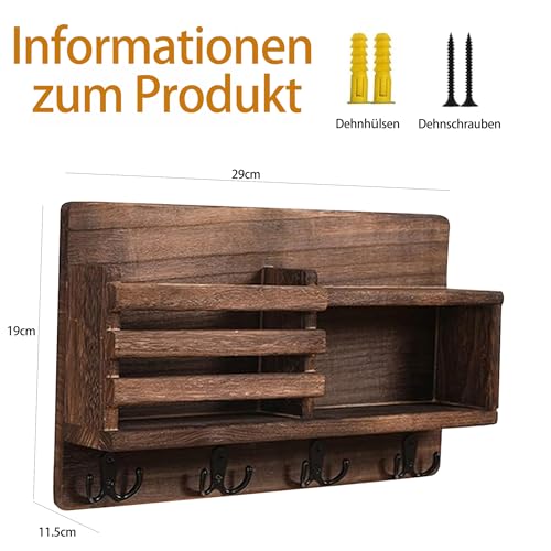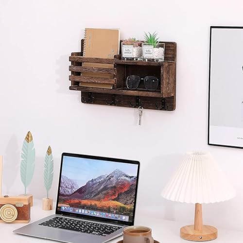 acfeco - حامل مفاتيح خشبي مع رفين، منظم جداري للمدخل أو غرفة المعيشة أو المطبخ أو المكتب مزودة بـ 8 خطافات تعليق من اكفيكو
