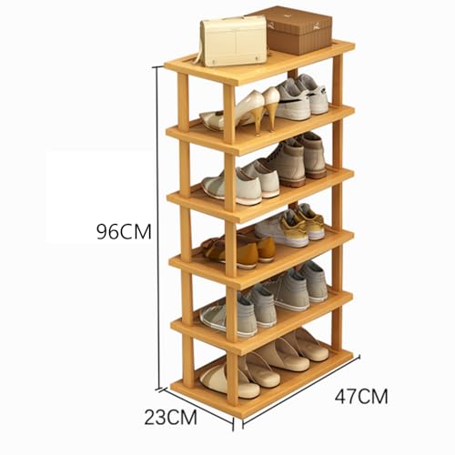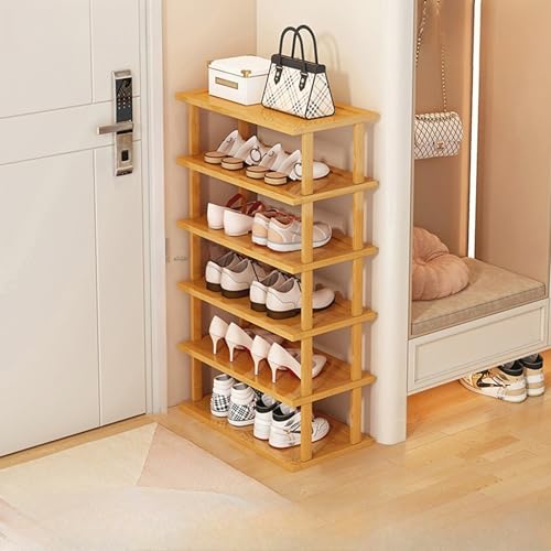 acfeco - رف أحذية من الخيزران بـ 6 أرفف، تصميم نحيف مفتوح، خزانة أحذية صغيرة موفرة للمساحة للمداخل والممر وغرفة المعيشة بألوان طبيعية من acfeco