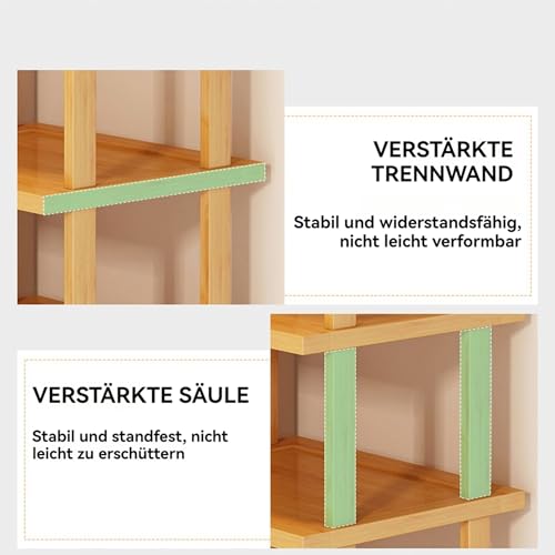 - قوي ومستقر: رف الأحذية الخشبي الضيق الخاص بنا مصنوع من الخيزران المتين عالي القوة، والذي تمت معالجته بعناية لضمان متانته الطويلة وهيكله الصلب. كل رف مناسب لسعة تحميل قصوى تبلغ حوالي 5 كجم، وهو أكثر من كافٍ للاستخدام اليومي. بفضل الأرفف والأعمدة السميكة بشكل خاص، تحصل خزانة الأحذية المفتوحة الخاصة بنا على قبضة إضافية لزيادة الثبات العام وبالتالي تقليل تكاليف الصيانة والاستبدال على المدى الطويل.
