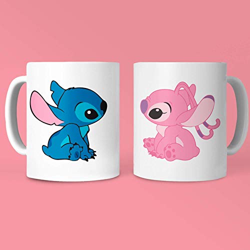 Mad Alchemist Labs - أكواب افطار أصلية مع اقتباسات هدايا للأصدقاء/عيد الحب - بتصميم شخصيتي ستيتش اند انجل - 325 مل - عبوة من قطعتين بلانيتاتازاس، سيراميك، بيج داكن / تان