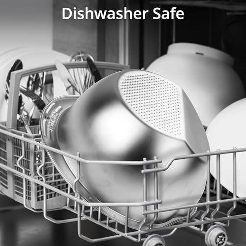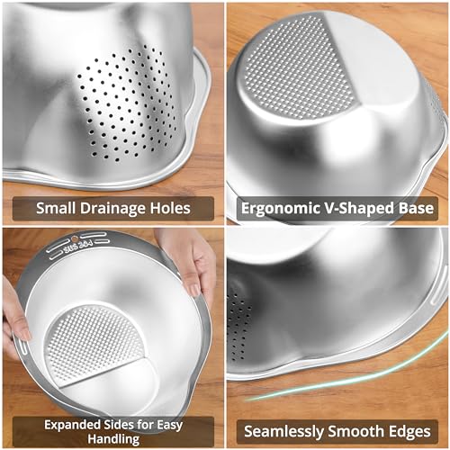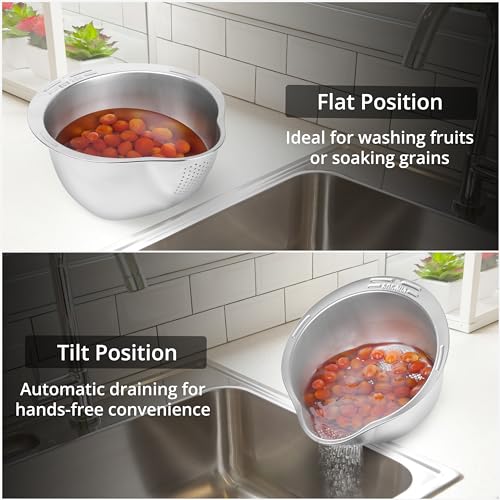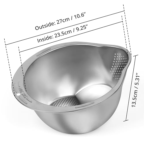 Winter Shore - بولة غسيل الأرز مصنوعة من الفولاذ المقاوم للصدأ، مصفاة أرز آمنة للطعام مع فوهة صب، صفاية مكرونة من الفولاذ المقاوم للصدأ للمطبخ لغسل وتصفية الكينوا والفواكه والخضروات من وينتر شور