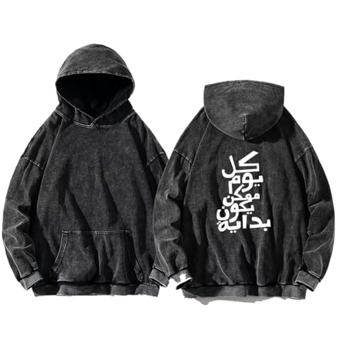 Generic - سويت شيرت بقلنسوة للشباب بمقاس كبير ولون رمادي من اسيد ووش مقاس كبير مناسب للعمل في العمل 3 كل يوم ممكن يكون بدايه