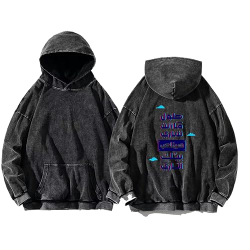 Generic - acid wash gray oversize Youth hoodie back art over size TEXT job work 32طول ما أنت شاري هيتلعب بيك اتاري