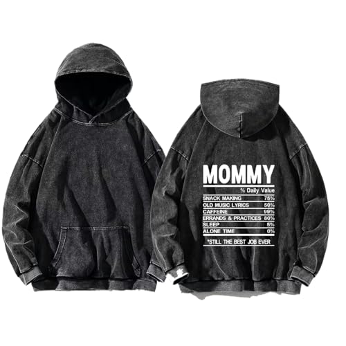 Generic - سويت شيرت بغطاء للرأس بمقاس كبير للشباب بتأثير غسيل حمضي مطبوع عليه عبارة للعمل، رمادي، 45