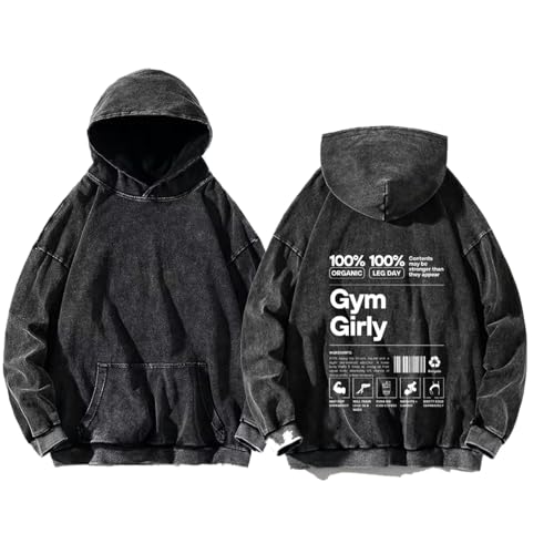 Generic - acid wash gray oversize Youth hoodie back art over size TEXT job work 52 gym girly