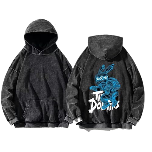 Generic - acid wash gray oversize Youth hoodie back art over size TEXT job work 62 bunny
