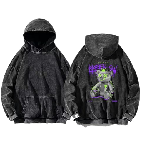 Generic - acid wash gray oversize Youth hoodie back art over size TEXT job work 64 bear