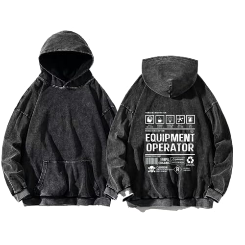Generic - سويت شيرت بغطاء رأس كبير الحجم للشباب من اسيد ووش رمادي مقاس كبير TEXT للعمل في العمل 98 مشغل معدات