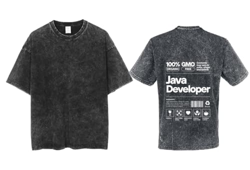 Generic - تي شيرت شبابي مغسول بالحامض بتصميم كبير على الظهر، مع كتابة نص يتضمن عنوان وظيفة، 17، مطور جافا، بلون رمادي، مقاس أوفر سايز