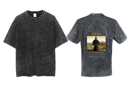 Generic - قميص شبابي كبير الحجم أوفر سايز بفن على الظهر مقاس كبير نص "عمر بن خطاب" رمادي (رمادي مغسول بالحمض)
