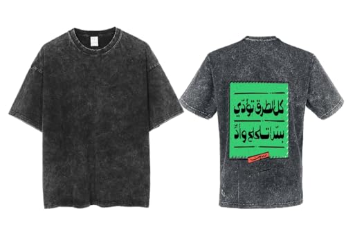 Generic - acid wash gray oversize Youth t-shirt back art over size TEXT job work 89 (كل الطرق تؤدي بس اتلحلح وأد)