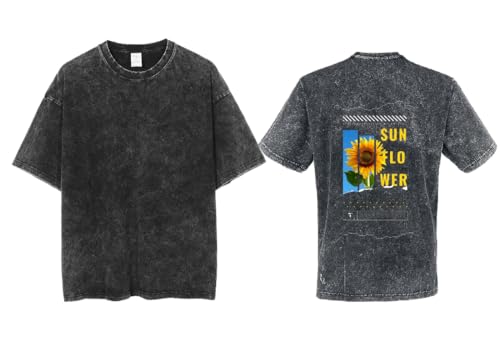 Generic - acid wash gray oversize Youth T-SHIRT back art over size TEXT job work 94 sunflower