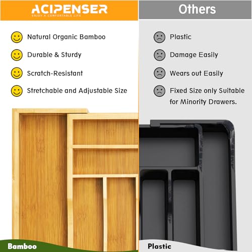 ACIPENSER - منظم أدراج مطبخ من الخيزران، صينية أدوات مائدة قابلة للتوسيع مع درج أدوات مائدة مزخرف لأدوات المائدة الفضية في المطبخ، من 8 فتحات من اسيبينسر، لون طبيعي، عرض من 29.4 إلى 48 سم، ارتفاع 38 سم، عمق 5 سم