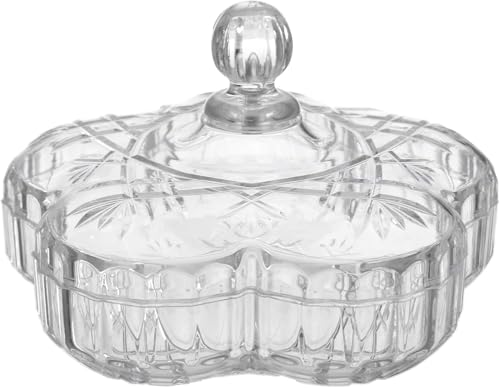 Generic - وعاء حلوى بغطاء من الاكليرك – طبق تقديم مزخرف بنقشة قطع شفافة (16 سم)