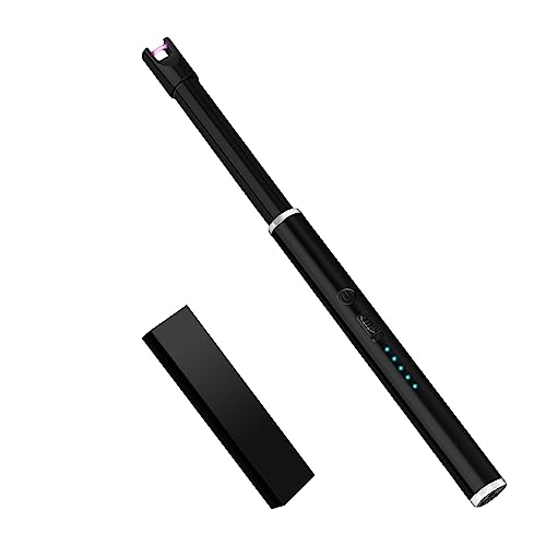ACMEME - ولاعة كهربائية طويلة قابلة لإعادة الشحن بـ USB، ولاعة شموع بدون لهب مقاومة للرياح مع قفل أمان للشواية والبوتاجاز والمدفأة والتخييم - أسود
