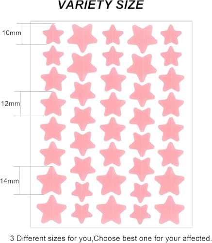 - أحجام متنوعة: معظم لاصقات حب الشباب تأتي بأحجام مختلفة في العبوة، 10، 12 و14 ملم، أشكال نجمة، مقاومة للماء وسهلة الالتصاق على الجلد، يمكنك اختيار الحجم الأنسب للمنطقة المصابة.