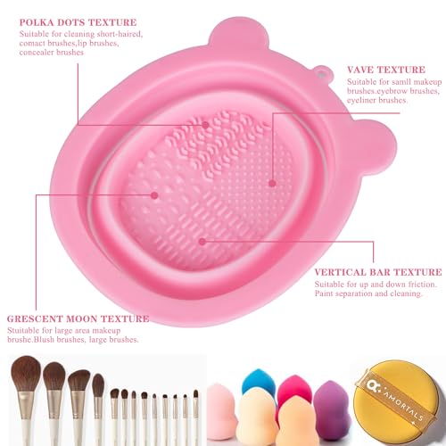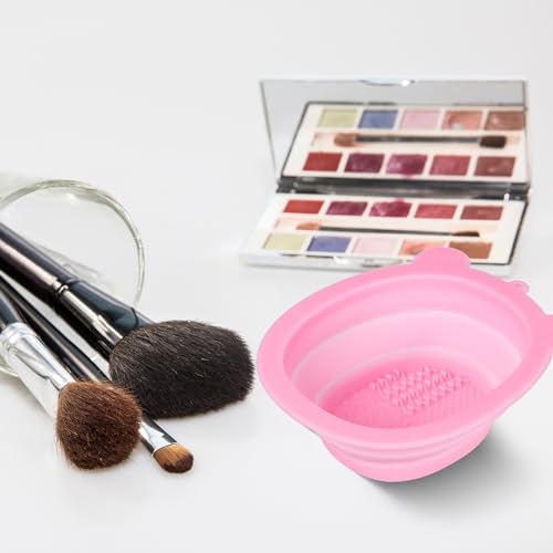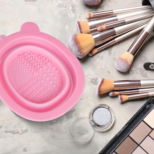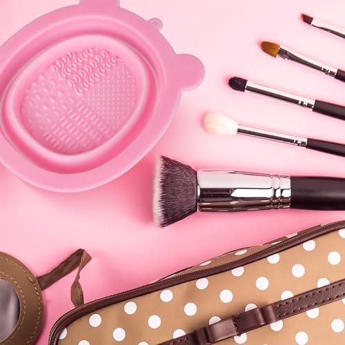 Acooruiteng - بساط محمول لتنظيف فرش المكياج، وسادة تنظيف فرش المكياج من السيليكون، وعاء تنظيف قابل للطي لفرشاة وإسفنجة المكياج وإسفنجة البودرة من اكورويتنج لون وردي