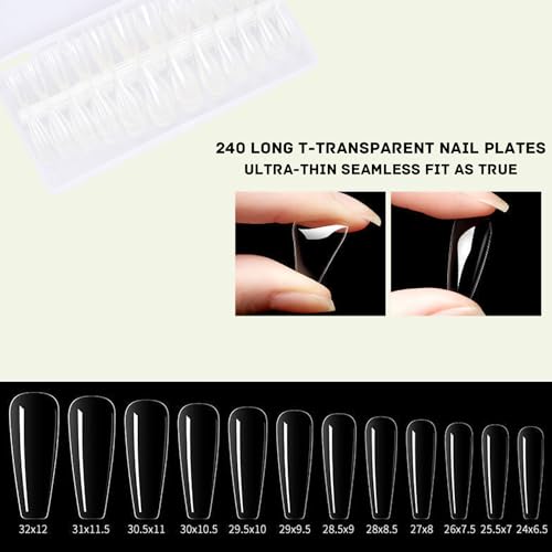 Acooruiteng - عبوة من 240 رأس اظافر جل شفاف من اكورويتنج - 12 مقاسًا، مجموعة استوديو اظافر منزلية يمكنك تركيبها بنفسك مع حقيبة تخزين