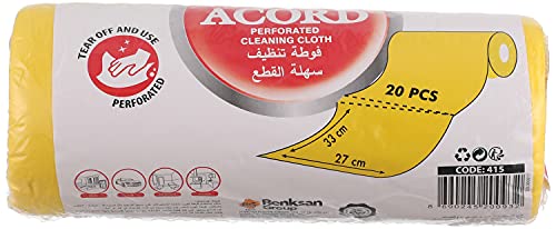 Acord - رول فوط تنظيف مايكروفايبر من اكورد، 20 قطعة - اصفر