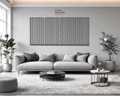 Acoustic Motion - اكوستيك موشن® لوحات فنية جدارية خشبية من خشب ام دي اف، تصميم ديريف مع شريط مزدوج الوجه، تعلق على الحائط للمنزل وغرفة المعيشة وغرفة النوم والمكتب والفندق، 25 × 50 × 0.5 سم، مجموعة من 4 قطع