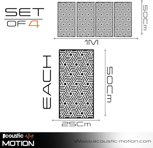 Acoustic Motion - اكوستيك موشن® لوحات فنية جدارية خشبية من خشب ام دي اف بتصميم انتيرا مع شريط مزدوج الوجه، تعلق على الحائط للمنزل وغرفة المعيشة وغرفة النوم والمكتب والفندق، 25×50×0.5 سم، مجموعة من 4 قطع