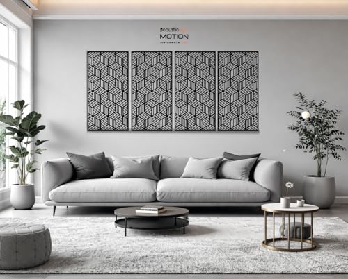 Acoustic Motion - اكوستيك موشن لوحات فنية جدارية خشبية ام دي اف بتصميم ايزوهيكس مع شريط مزدوج الوجه، تعلق على الحائط للمنزل وغرفة المعيشة وغرفة النوم والمكتب والفندق، 25 × 50 × 0.5 سم، مجموعة من 4 قطع