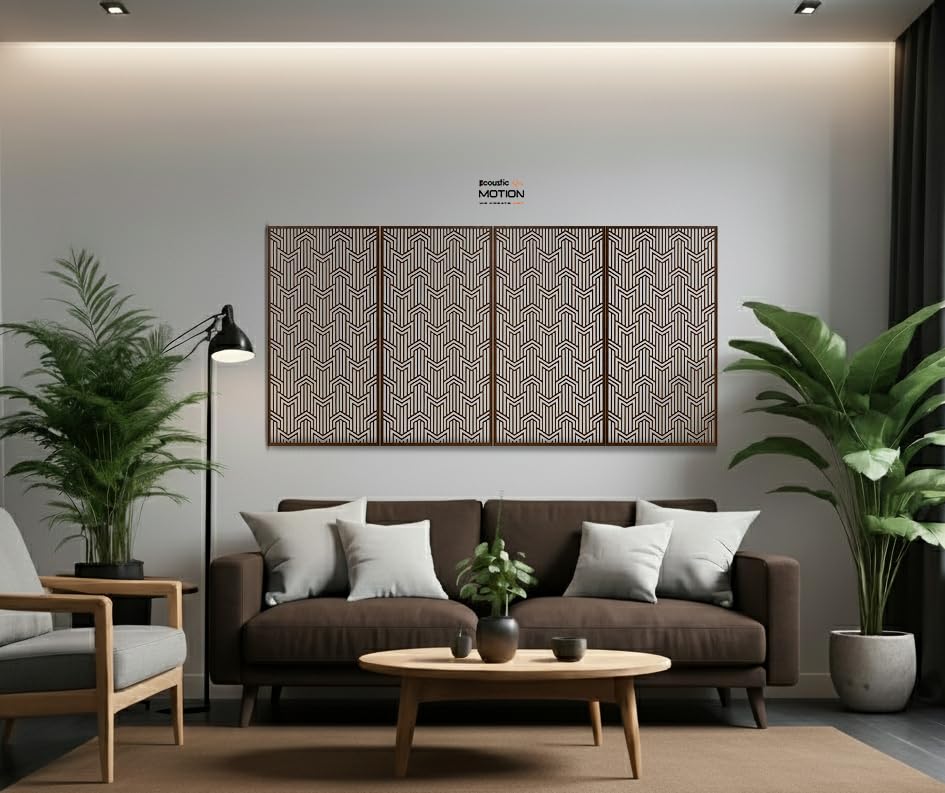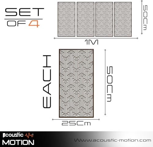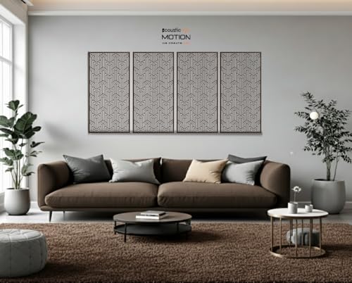 Acoustic Motion - اكوستيك موشن لوحات فنية جدارية من خشب ام دي اف بتصميم متريكس مع شريط مزدوج الوجه، تعلق على الحائط للمنزل وغرفة المعيشة وغرفة النوم والمكتب والفندق، 25 × 50 × 0.5 سم، مجموعة من 4 قطع