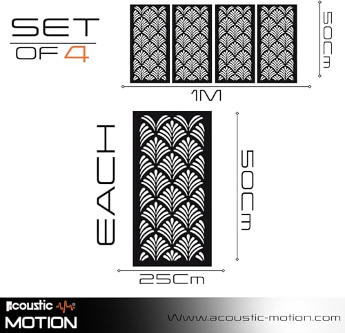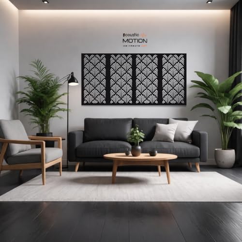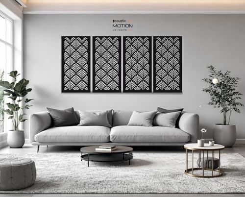 Acoustic Motion - اكوستيك موشن لوحات فنية جدارية خشبية من خشب ام دي اف، تصميم بالمورا مع شريط مزدوج الوجه، للتعليق على الحائط للمنزل وغرفة المعيشة وغرفة النوم والمكتب والفندق، 25 × 50 × 0.5 سم، مجموعة من 4 قطع