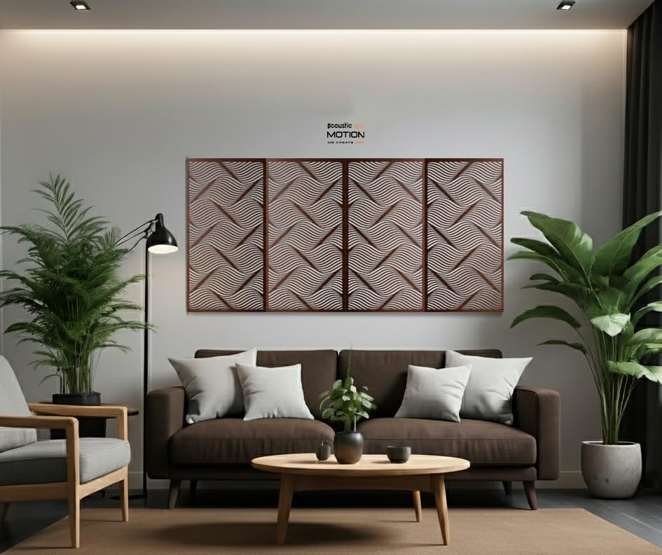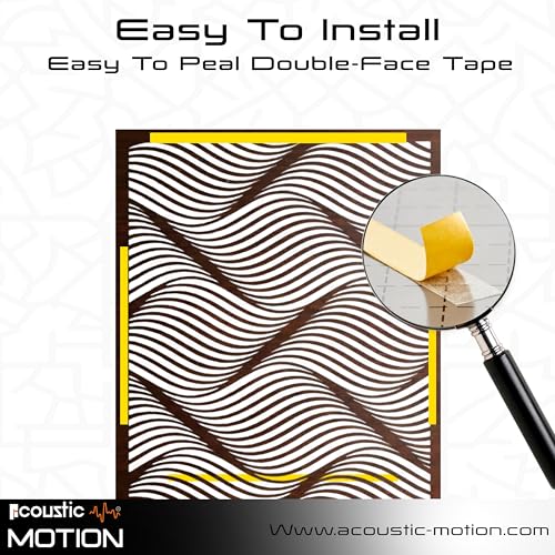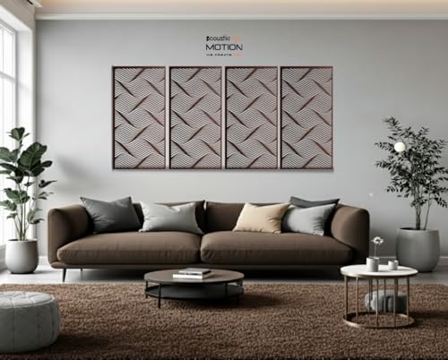 Acoustic Motion - اكوستيك موشن لوحات فنية جدارية خشبية من خشب ام دي اف، تصميم فيشوال نويز مع شريط مزدوج الوجه، تعلق على الحائط باللون البني الحديث للمنزل وغرفة المعيشة وغرفة النوم والمكتب والفندق، 25×50×0.5 سم، مجموعة