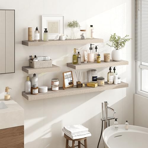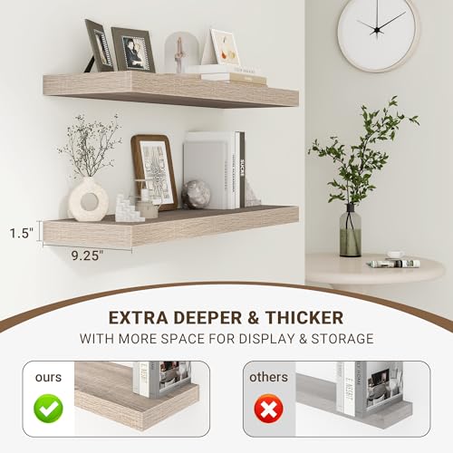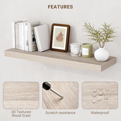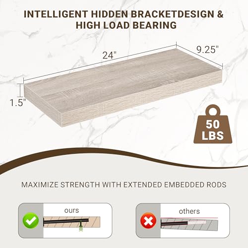 Acovy - أرفف جدارية عائمة بعمق 23 سم للجدارن مع دعامات غير مرئية، أرفف عميقة للحمام وغرفة النوم وغرفة المعيشة مصنوعة من خشب البلوط الأبيض بلمسة عتيقة من اكوفي، مقاس 60 سم