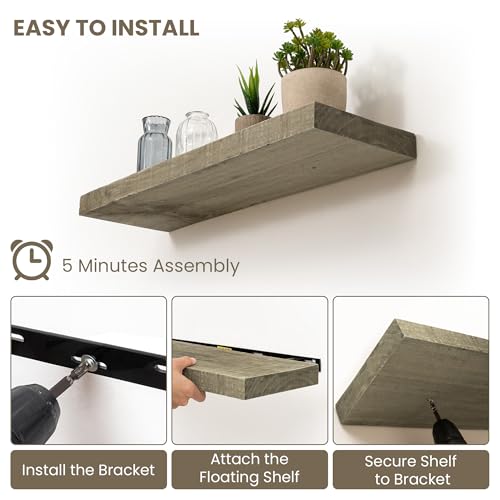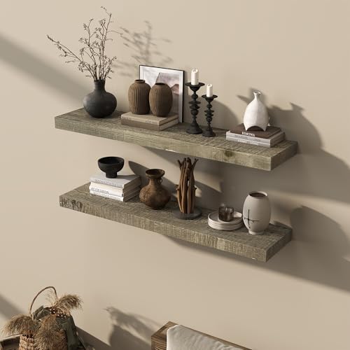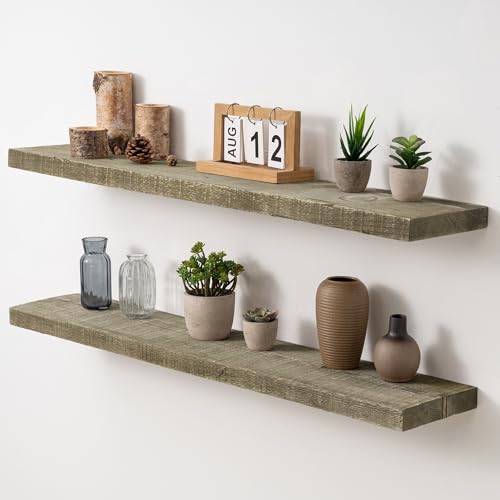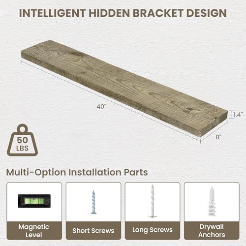Acovy - ارفف عائمة من خشب بارنوود المستصلحة بعمق 8 انش من اكوفي، ارفف حائط مع دعامة غير مرئية لغرفة المعيشة والحمام وغرفة النوم والمطبخ، 40 انش، مجموعة من قطعتين، رمادي اسمنتي