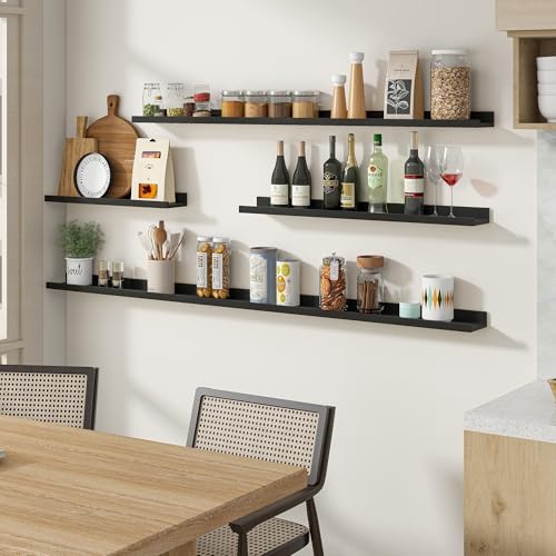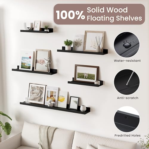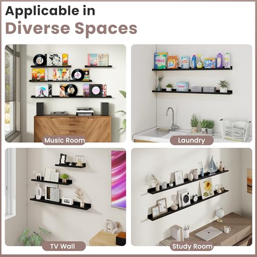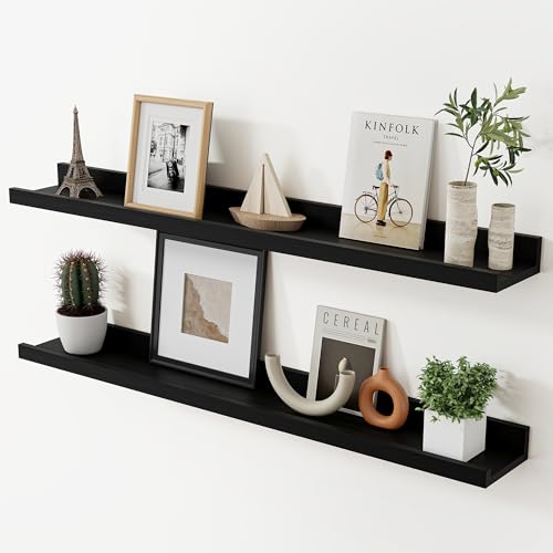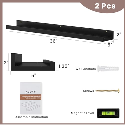 Acovy - ارفف معلقة للجدار من اكوفي، رف خشبي صلب مقاس 91.44 سم، رف صور للجدار مع حافة، أرفف كتب معلقة لغرفة المعيشة وغرفة النوم والمطبخ وديكور الحضانة، أسود، مجموعة من قطعتين