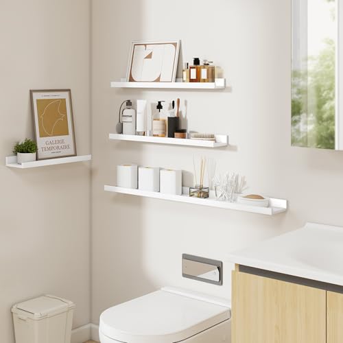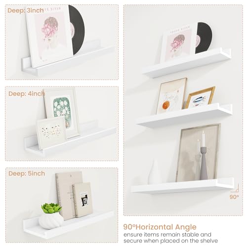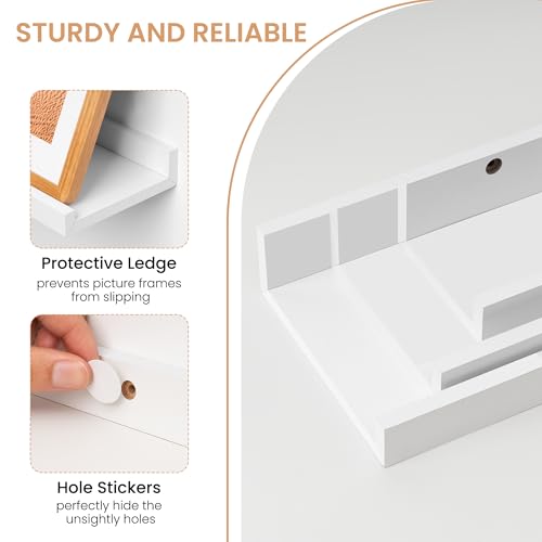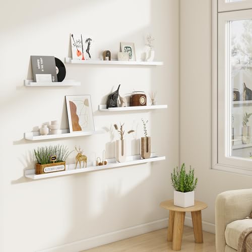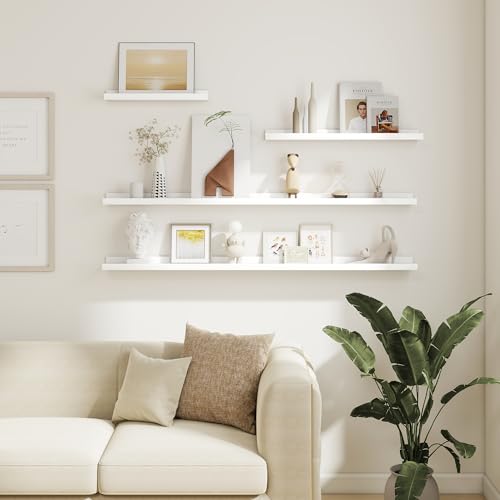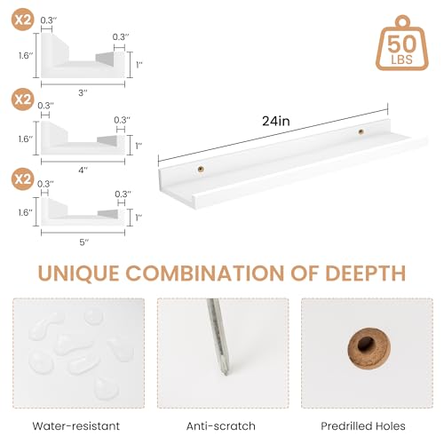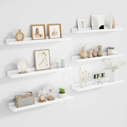 Acovy - مجموعة رفوف معلقة للصور من اكوفي، مجموعة من 6 قطع، رف صور طويل 60.9 سم للحائط مع شفاه، أرفف مثبتة على الحائط لغرفة النوم وغرفة المعيشة والحمام والمطبخ، أبيض