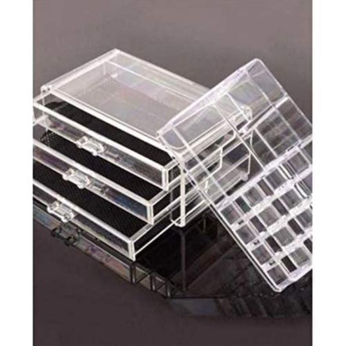 - التفاصيل: تخزين مكياج اكريليك شفاف. سيدوم صندوق التخزين هذا لفترة طويلة. يأتي مع حشوات شبكية سوداء لضمان الحفاظ على مجوهراتك بأمان.