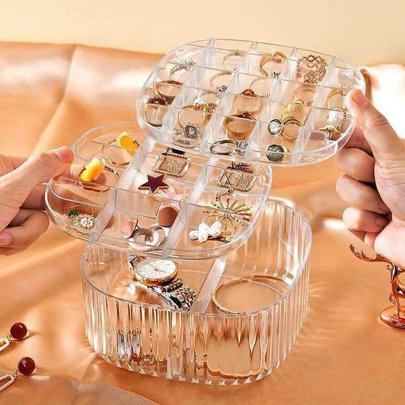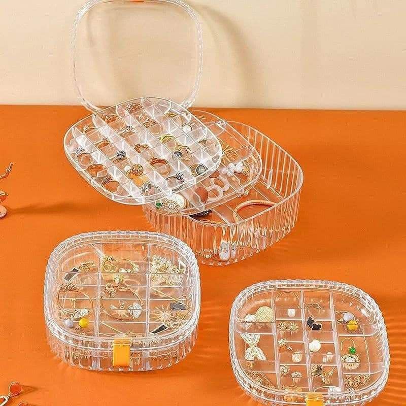 - منظم أكريليك شفاف يجعل كل إكسسواراتك مرئية ومنظمة بسهولة.