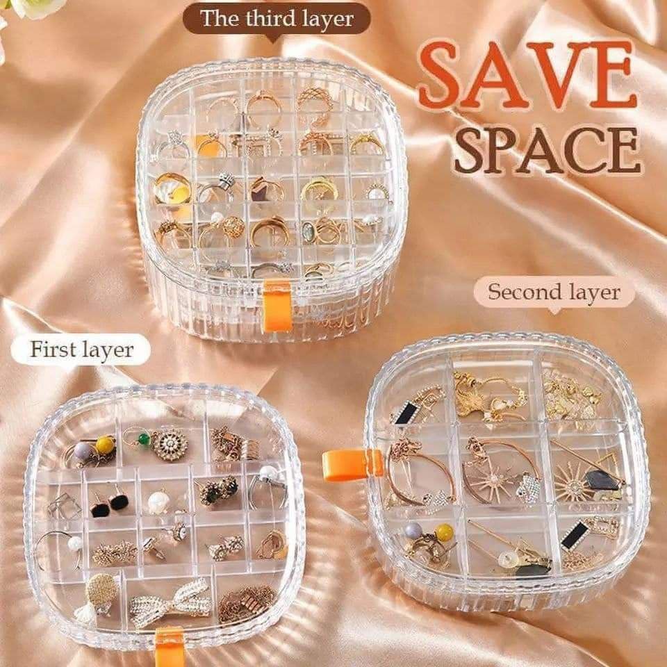 - 3 طبقات لتخزين الحلقان، الخواتم، السلاسل وكل القطع الصغيرة.