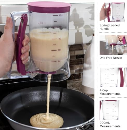 - 【تجربة صب أنظف】يوجه تصميم المنفذ المركز الخليط مباشرة على المقالي أو القوالب، مما يحد من الرذاذ والقطرات المتناثرة على الأسطح المحيطة، مما يدعم مساحة عمل أكثر ترتيبًا ويقلل من جهد التنظيف بعد الطهي، ويسمح للمستخدمين بالحفاظ على تنظيم أفضل أثناء التحضير، خاصة عند العمل مع صواني أو صواني متعددة في وقت واحد