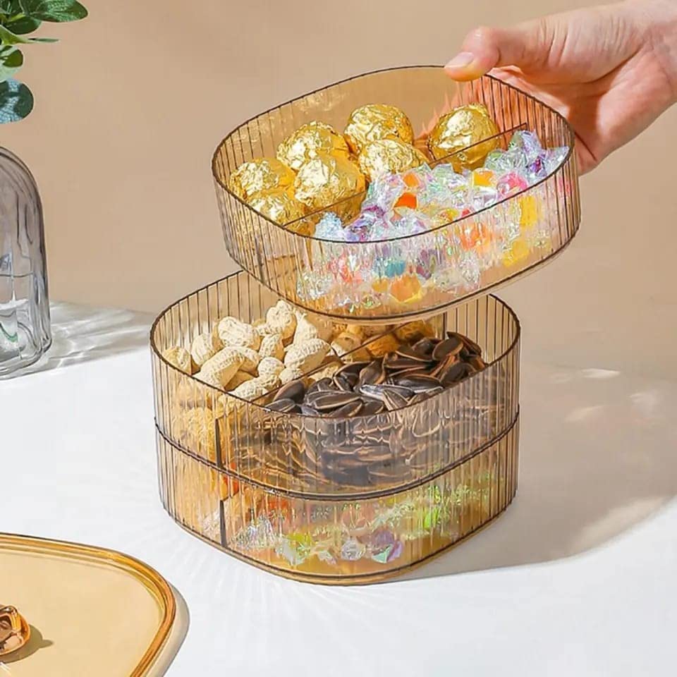 - صينية تقديم مكونة من 3 طبقات وحجرتين لكل طبقة: مع الغطاء المتضمن هو كل ما تحتاجه للاستمتاع بالمقبلات والخضروات والحلوى والمكسرات وجميع الأشياء المفضلة لديك. اتركه على طاولة القهوة لمشاهدة التلفزيون والأفلام.