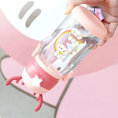 Generic - زجاجة اكريليك للاطفال - تصميم غزال جميل، غطاء سيليكون، عزل مزدوج الجدار للمشروبات الساخنة والباردة، مقبض سهل الحمل، مانعة للتسرب وصلبة (قطعة واحدة)