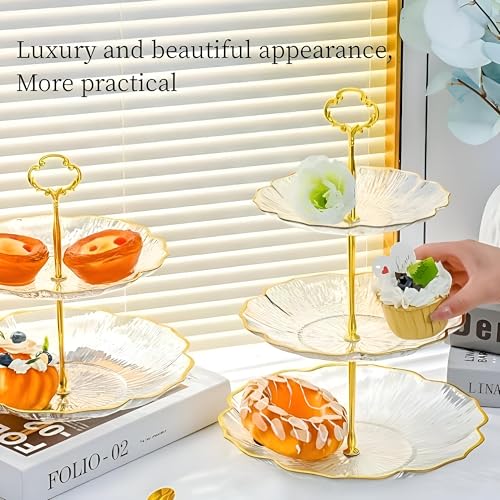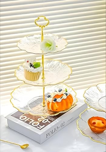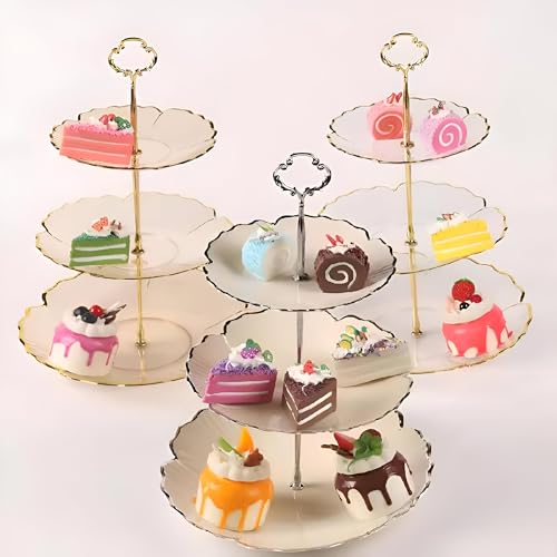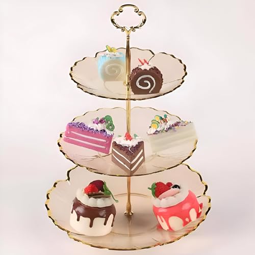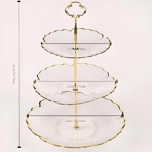 Generic - حامل كيك اكريليك - تصميم شديد التحمل ومقاوم للكسر مع ثلاثة طوابق، اعمدة ذهبية معدنية، واستخدام متعدد الوظائف لتقديم الحلويات والبسكويت والحلويات بحجم كبير، اللون كما هو موضح