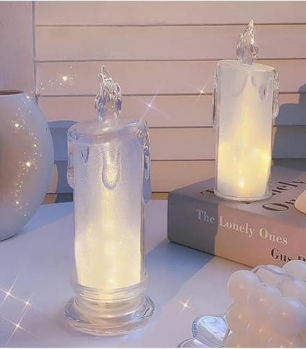 Generic - شمعة أكريليك - ديكور أنيق ورومانسي مع قاعدة حجرية فريدة من نوعها لأجواء فاخرة