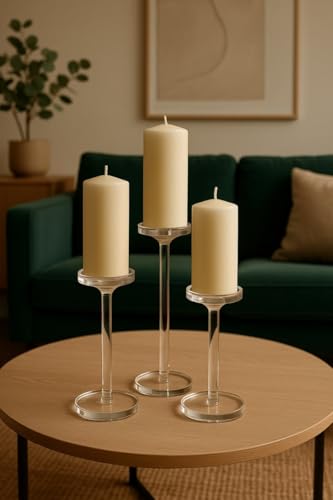 - تصميم عصري: مجموعة من 3 حوامل شموع أكريليك عصرية تتميز بلمسات أنيقة من الستانلس ستيل، مثالية لخلق أجواء راقية