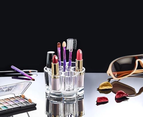 Generic - منظم مستحضرات التجميل من الاكريليك الشفاف - حامل احمر الشفاه والفرشاة، صندوق تخزين مكياج انيق لطاولة الزينة، حامل عرض مستحضرات التجميل الشفاف المتين