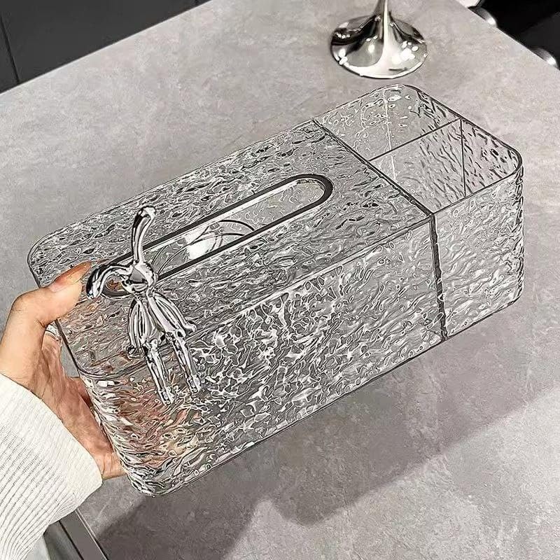 AREXOL - علبة مناديل اكريليك كريستال بتصميم أرنوب 3 خانات لتنظيم المناديل والريموت والاكسسوارات بشكل أنيق وفاخر لمنزلك